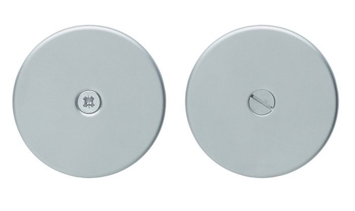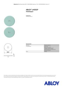 Välioven peitekilpi Abloy LH001P messinki tai teräs satiinikromi. Normaaliversio soveltuu sisäoviin, joiden paksuus on 40mm, paksumpiin oviin tarvitaan pidemmät ruuvit.