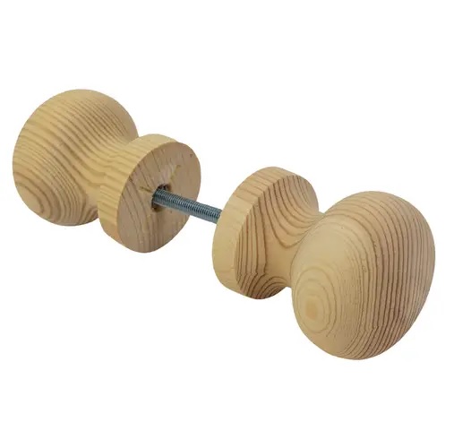 Saunanoven mäntyinen nuppivedin, puuvalmis, halkaisija 58mm. Sopii puiseen saunanoveen SOA tai SLB.