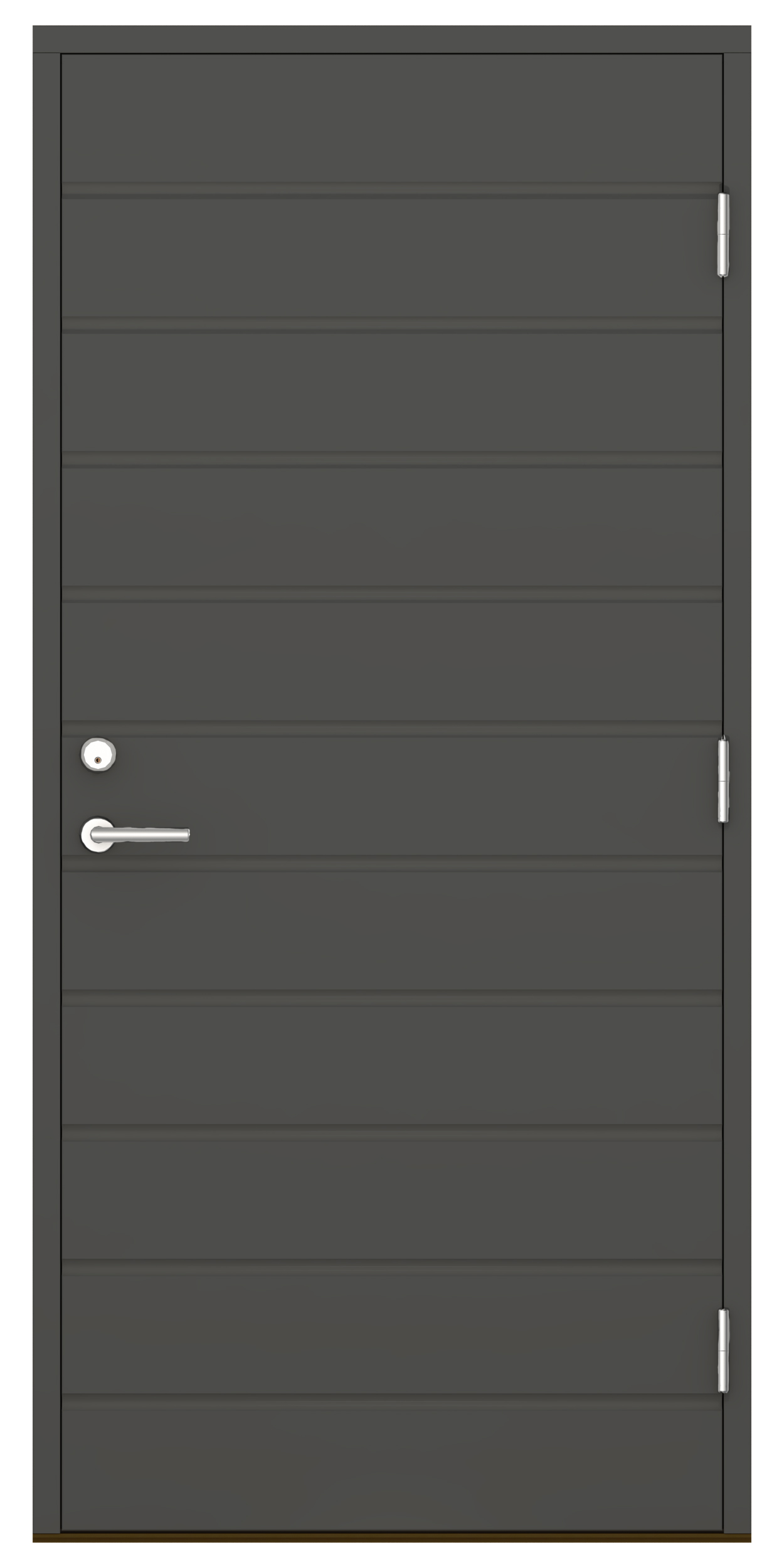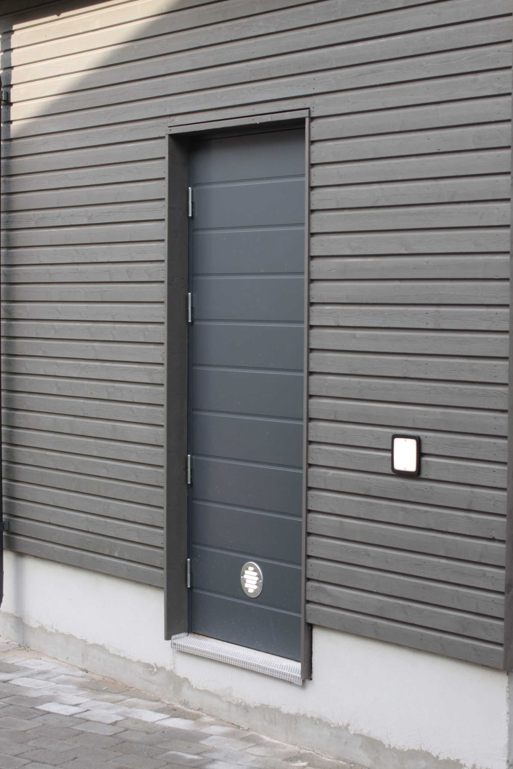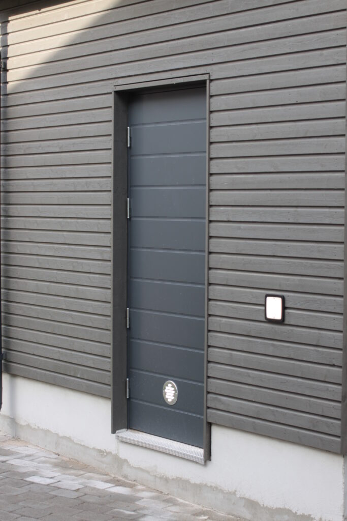 Säänkestävä perusovi, joka sopii erinomaisesti varaston ulko-oveksi.